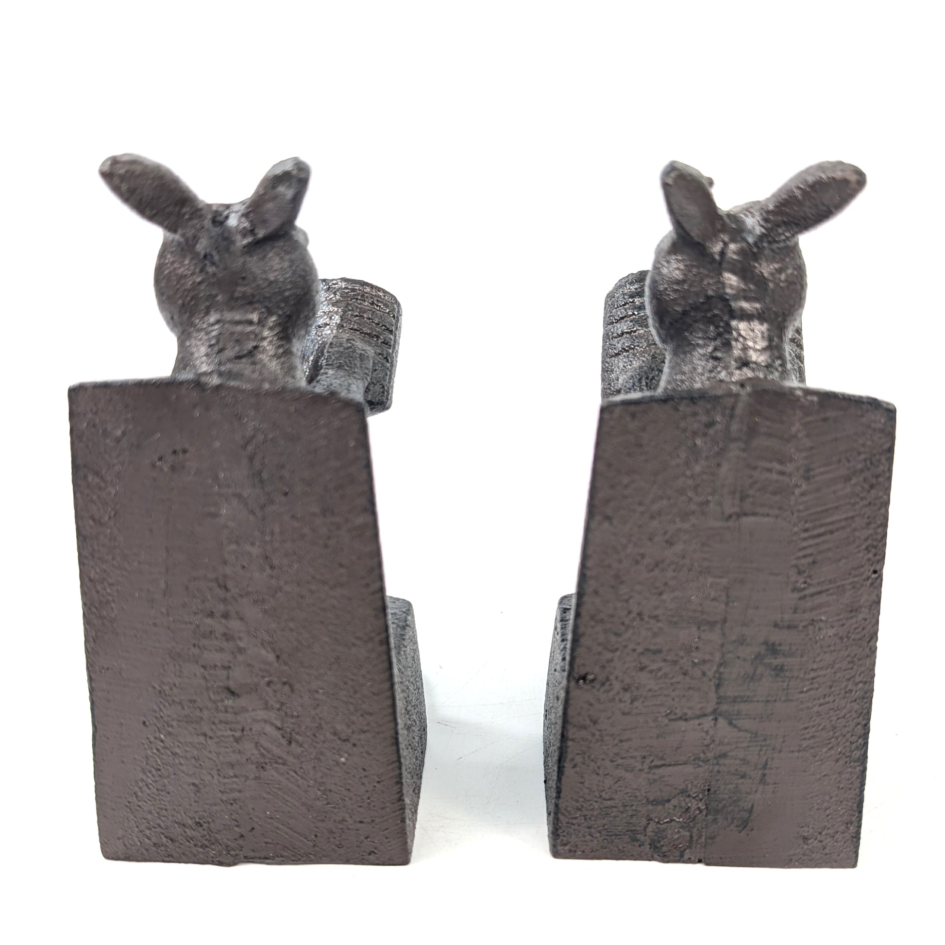 Add a whimsical touch to your bookshelf with these charming cast iron reading rabbit bookends. Each rabbit sits deep in concentration, reading their book with beautifully detailed pages, bringing character and warmth to any room. Heavy, durable and full of personality, they hold your favourite books securely in place.